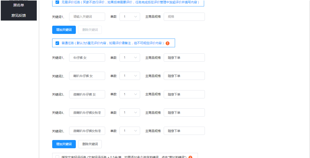 平台支持多关键词、二维码、淘口令等进店浏览类型,补单的进店方式不再单一化